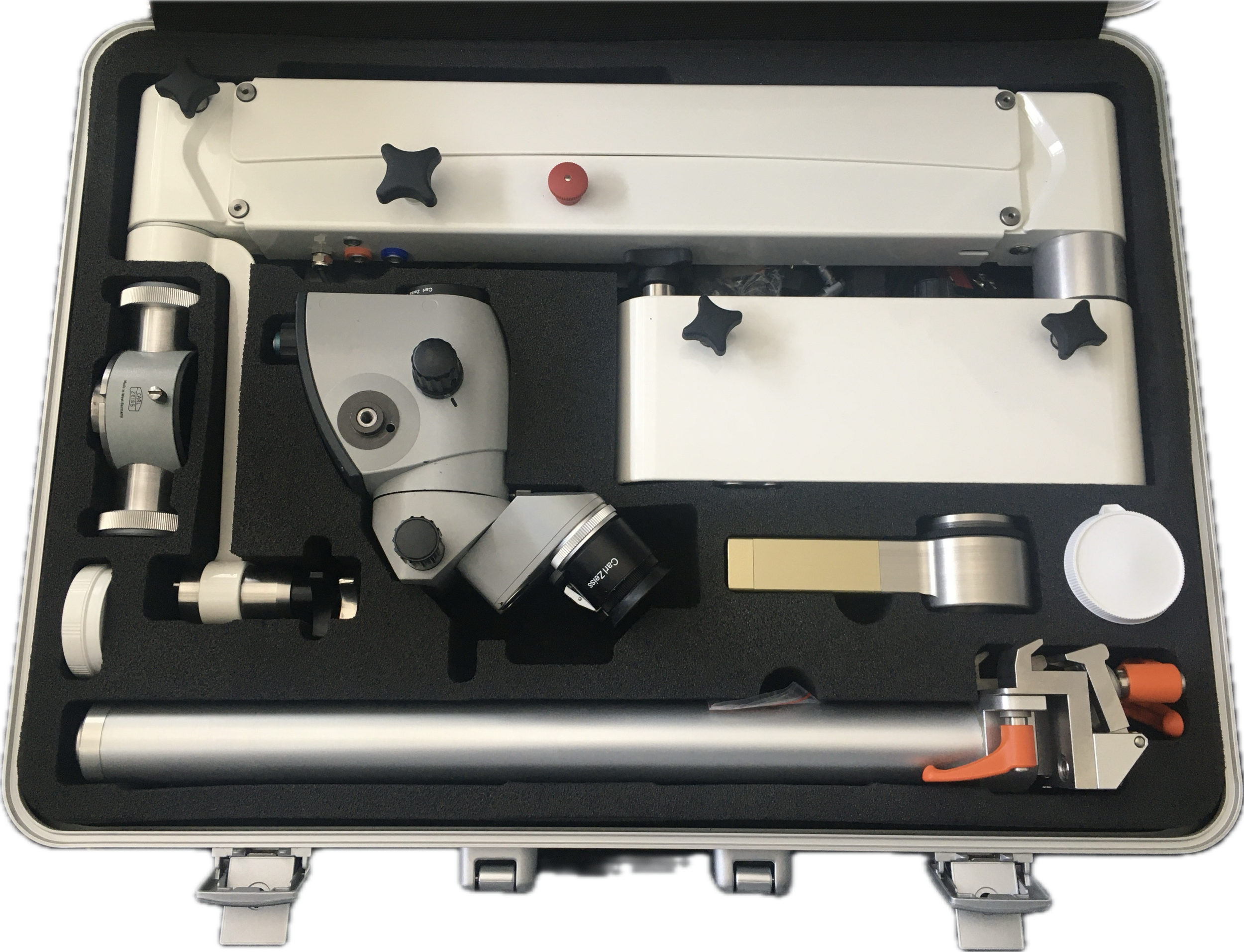 Das leichtgewichtige Mikroskop ist sicher in seinem robusten Aluminiumkoffer mit Handgepäck-Abmessungen verstaut und in weniger als fünf Minuten ohne Werkzeug aufgebaut. Das macht es optimal für den mobilen Einsatz. Auch das Bodenstativ ist im Nu in seine Einzelkomponenten zerlegt und handlich zu transportieren.